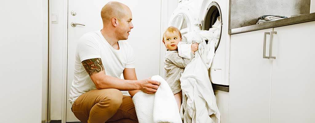 Väldigt smutsiga kläder ska sköljas innan de tvättas i maskin.